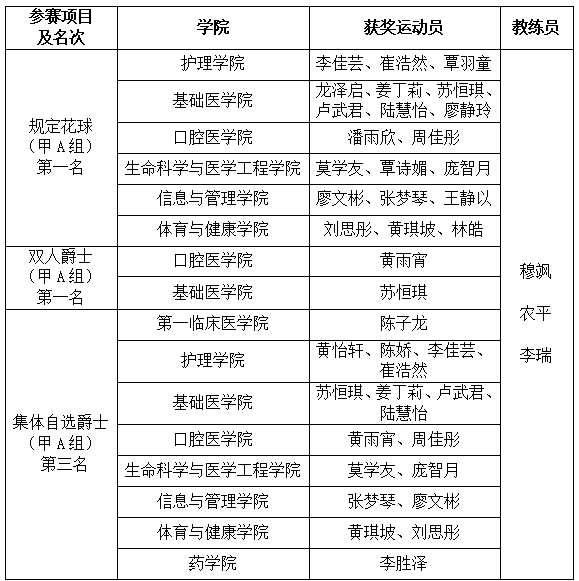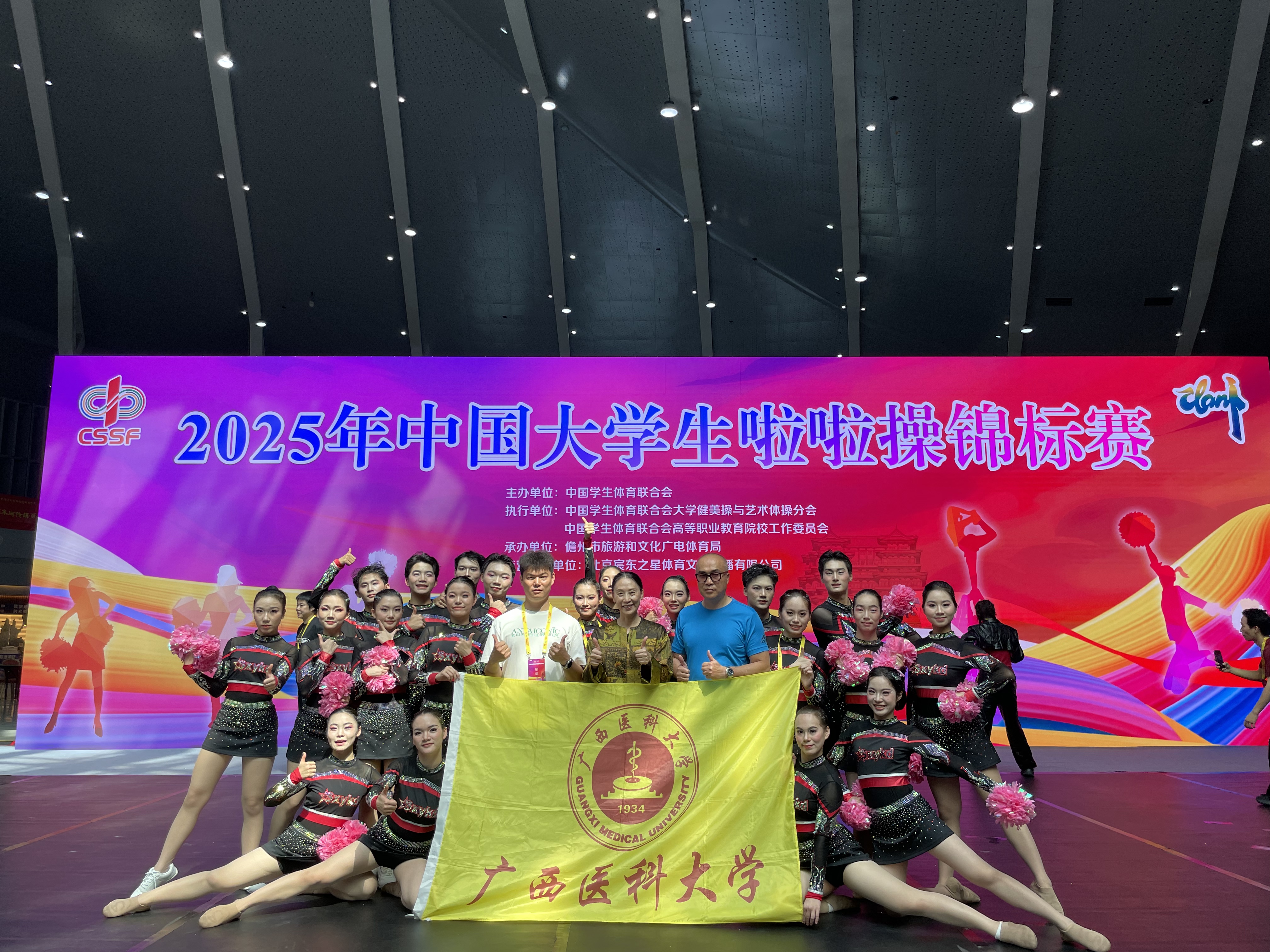 在此次中国大学生啦啦操锦标赛中,我校代表队的优异成绩不仅是学校体育教学与训练成果的集中展现,更是医大学子团结协作、奋勇拼搏精神的生动诠释。这些荣誉的背后,离不开教练员们的悉心指导、运动员们的刻苦训练,以及学校对体育工作的高度重视。未来,我校空灵啦啦队将带着这份荣耀,继续拼搏,为校争光;体育与健康学院将以此为契机,持续深耕教学与训练,不断提升竞技水平与项目影响力,为中国大学生体育事业的发展注入更多力量!