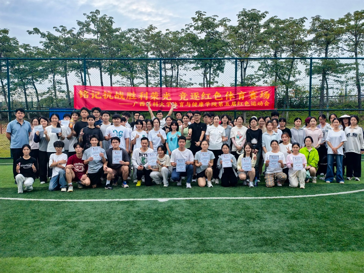 11月16日,广西医科大学体育与健康学院在武鸣校区东区足球场举办了以“铭记抗战胜利荣光 竞逐红色体育赛场”为主题的第五届红色运动会。本次活动以中国人民抗日战争暨世界反法西斯战争胜利80周年为背景,旨在深化红色育人,引领学生传承抗战精神。体育与健康学院党委副书记覃耀春、辅导员以及150余名在校学生参与其中。