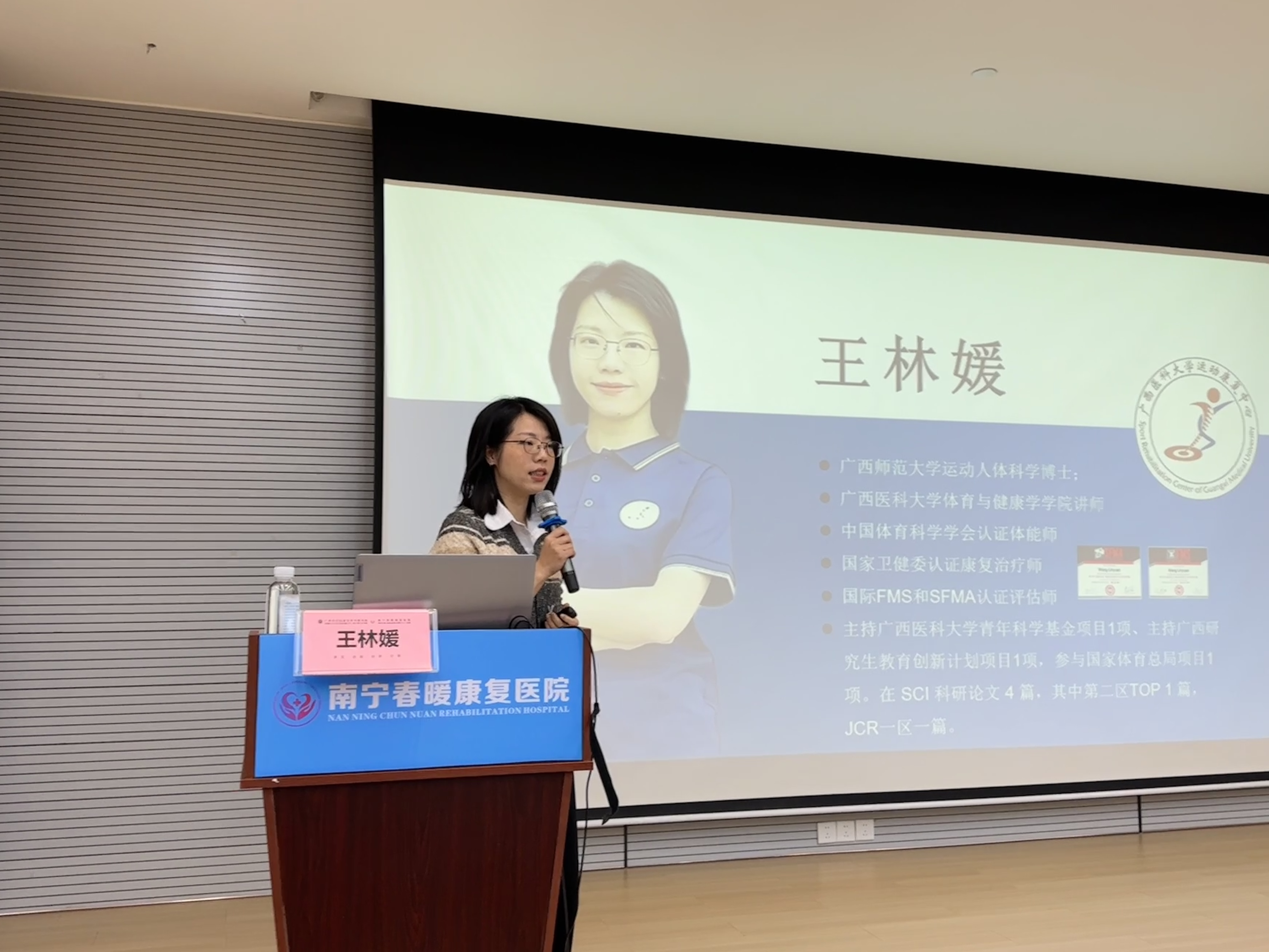南宁市春暖康复医院韦吉伟院长等领导和职工出席签订仪式。韦院长在欢迎词中表示:此次合作是医院深化医教协同,推动体医融合发展的重要举措,有助于培养理论与实践兼备的康复人才。穆飒院长介绍了体育与健康学院运动康复专业人才培养,专业特色、实验室、实习基地、学生就业等情况,并提出四点合作展望。一是社会教学科研协同,构建创新共同体;二是优化人才联合培养,打造特色育人体系;三是推进定向合作模式,实现人才精准对接;四是拓展社会服务维度,共担健康发展使命。王林媛老师还对该医院康复师进行了《运动处方的开具与实践应用》专题授课培训。